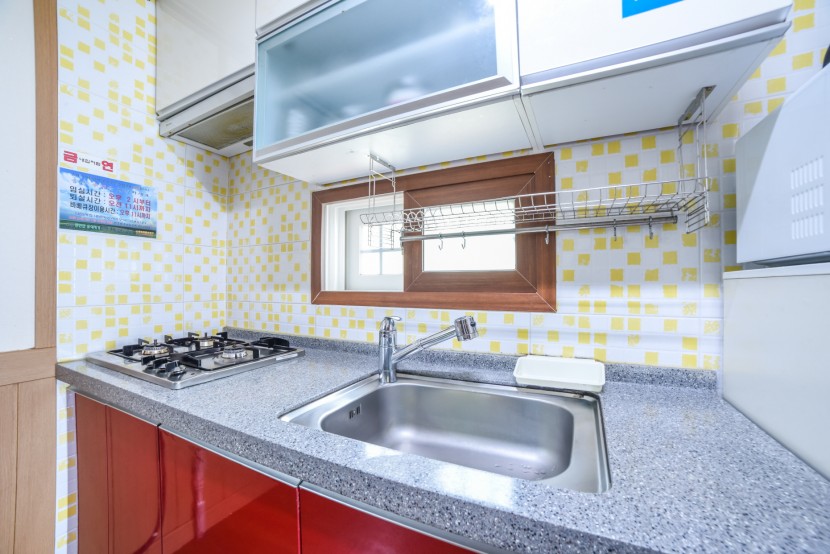 [비치용품]벽걸이TV, 냉장고, 싱크대, 전기밥솥, 전자렌지, 식기류, 와이파이 공유기, 에어컨, 테이블, 침구류, 드라이기 등